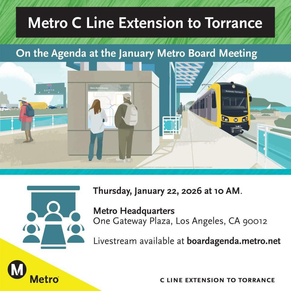 🚆 Line Extension to Torrance is officially on the agenda at the January Metro Board Meeting. This meeting is a key moment for the future of the C Line Extension.