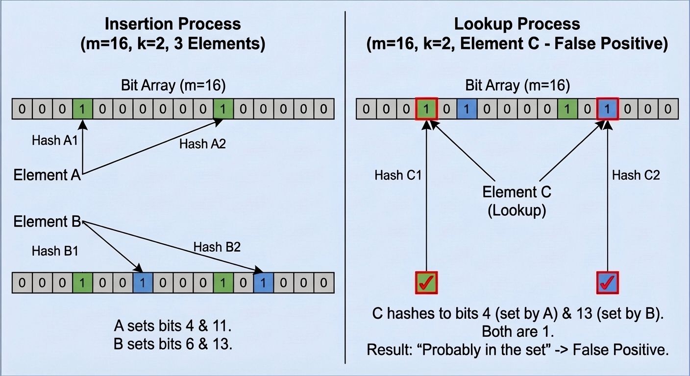 The headline is misleading if you are familiar with bloom filters.
