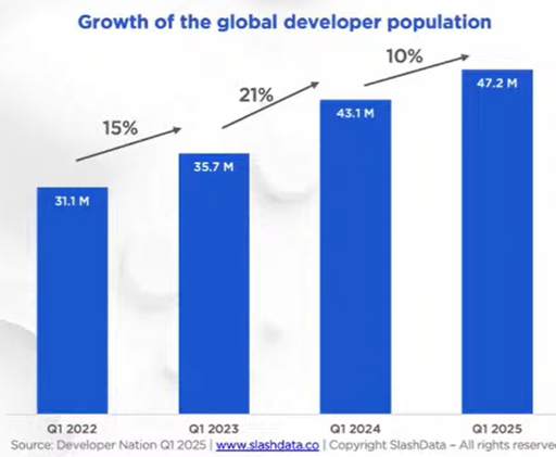 Compared to all languages: There are now more C++ developers than the #1 language had just four years ago. Compared to Rust: Each of C++, Python, and Java just added about as many developers in one year as there are Rust total developers in the world.