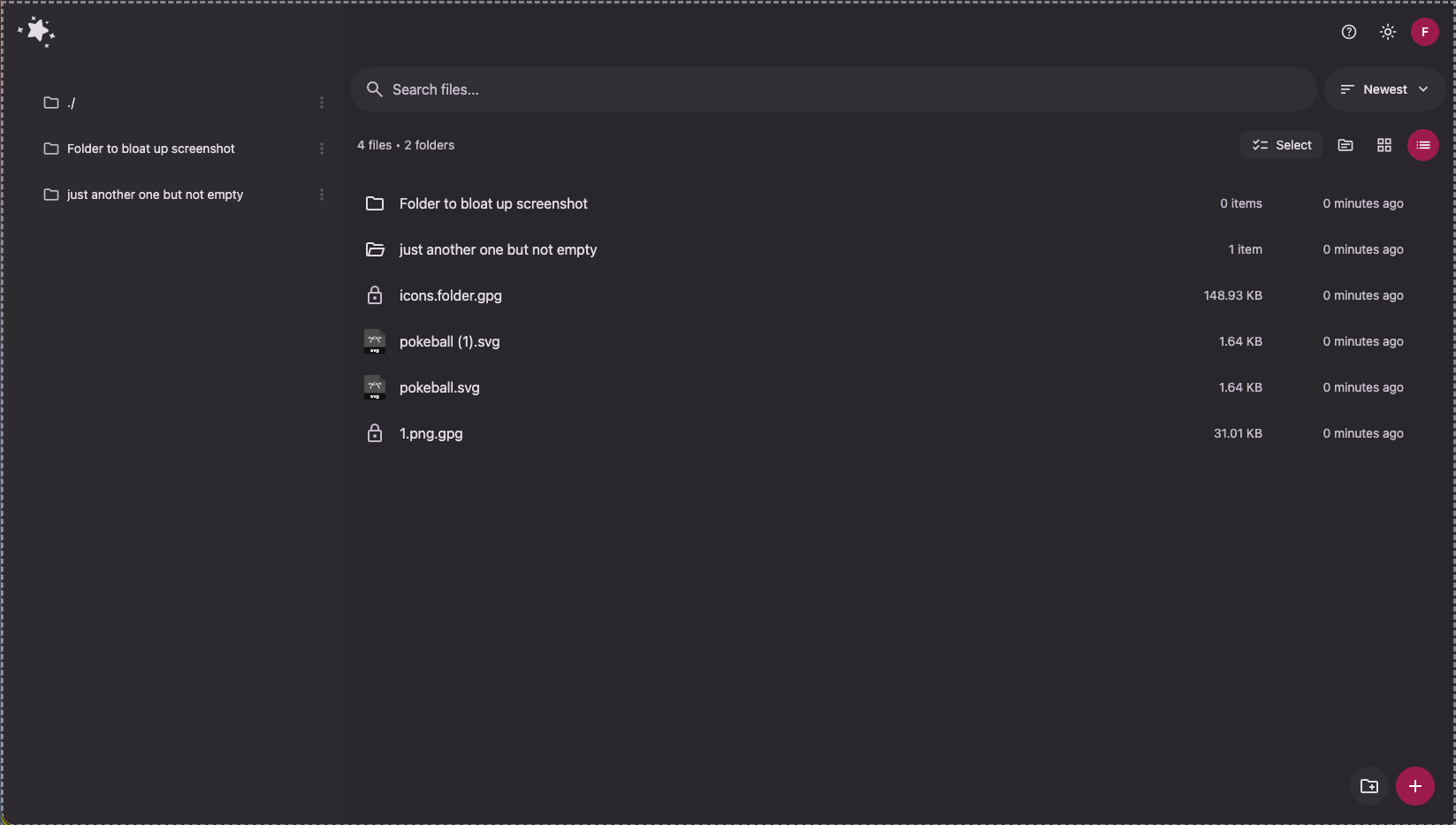 The latest update features full on PGP encryption, transfer encryption (I don’t want to call it e2e because files do end up decrypted on the server unless you purposely upload them via the “upload encrypted file”, but it’s effectively e2e, they get encrypted on your browser - requires https/localhost - are transferred encrypted and get decrypted once safe on your server).