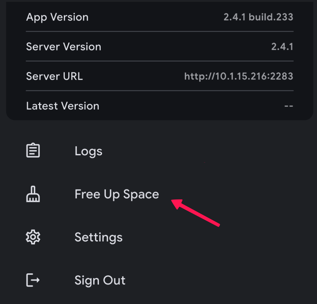 Free Up Space allows you to remove local media files from your device that have already been successfully backed up to your Immich server (and are not in Immich trash). This helps reclaim storage on your mobile device without losing your memories. The feature can be accessed from the user profile panel or from the Settings page in the mobile app.