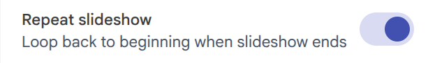 The slideshow settings on the web now include an option to automatically start the slideshow over.