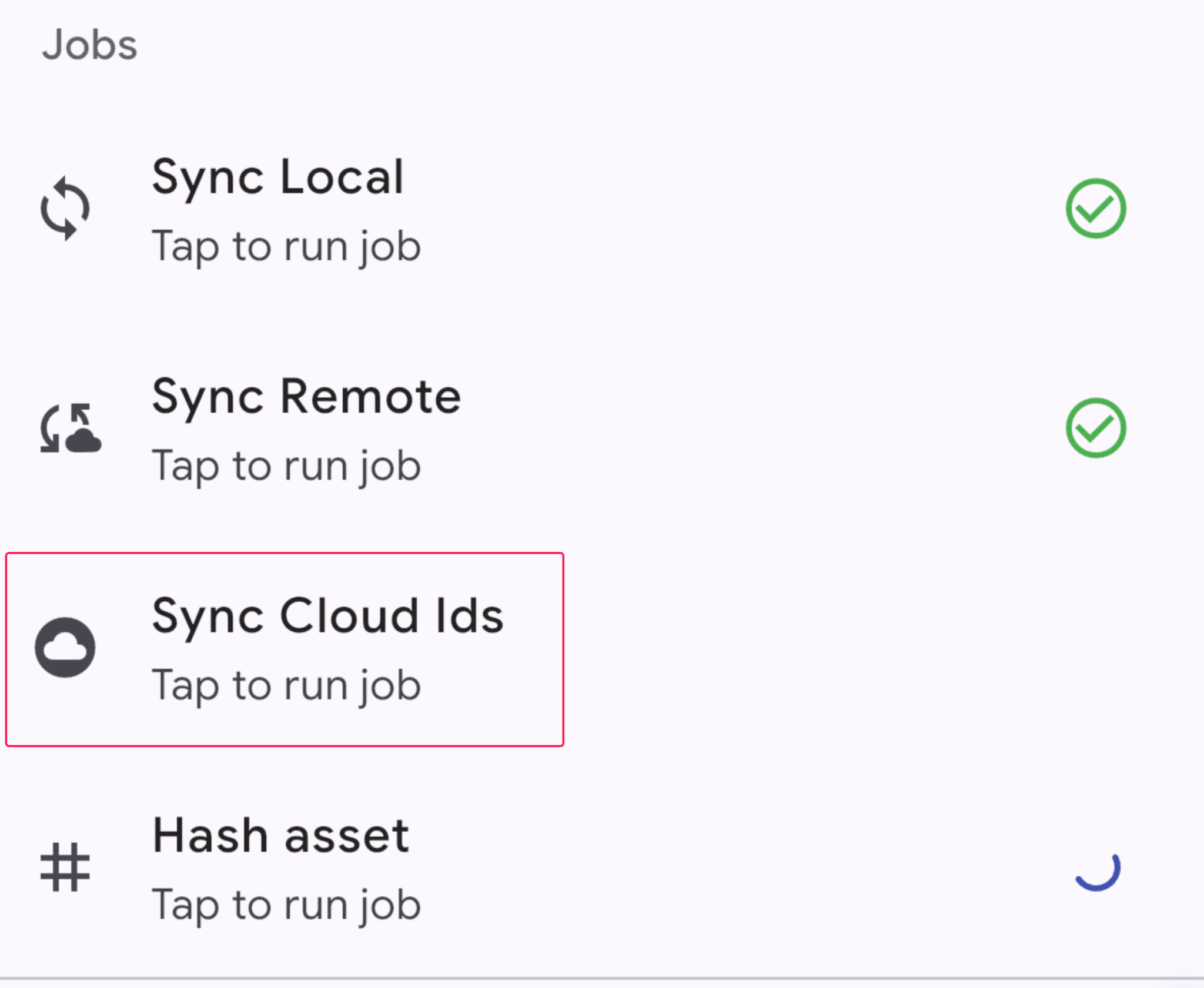 For iOS and iCloud users, it is recommended to go to App Settings > Sync Status and tap the âSync Cloud IDsâ button to backfill the metadata for the uploaded content. You only need to do this once.