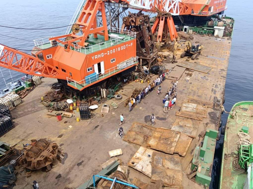 This is a Chinese crew violating Malaysian law by salvaging a British warship.